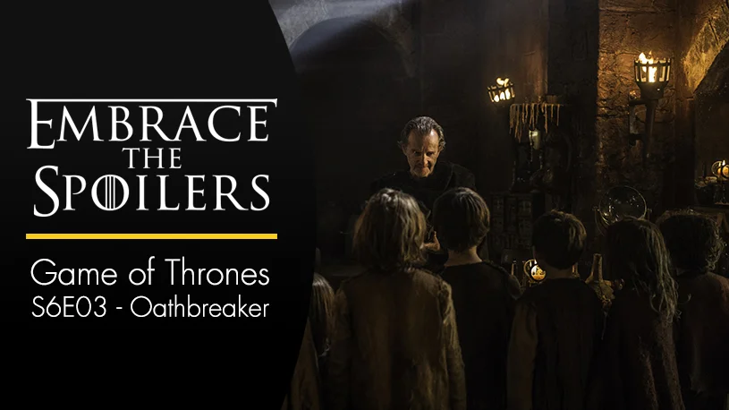 Embrace the Spoilers is back for Game of Thrones, Season 6, Episode 3: Oathbreaker. Ned turns out not to be as honest as we thought, Varys's little birds were revealed, Tyrion wants to play Never Have I Ever, and watches are ending. Join Garrett and Jocelyn as they dive into the latest episode.