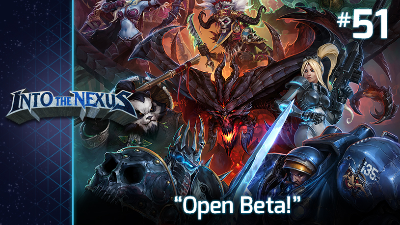 The 51st episode Into the Nexus is here and so is open beta for Heroes of the Storm! Also this week matchmaking has been improved, new skins have been added to the game, global play was unlocked, Heroes made it onto the walls of McDonalds in China and into the pages of Korean Maxim, Garrett and Kyle started week 1 of playing heroes they've never played before, and many rapid-fire emails and questions from the chatroom were taken!