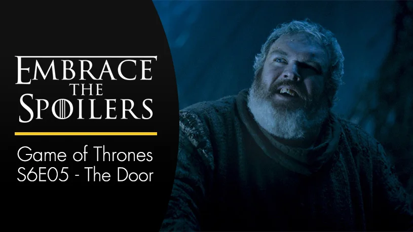 Embrace the Spoilers is back for Game of Thrones, Season 6, Episode 5: The Door. We finally get the meeting between Sansa and Littlefinger, Arya goes to see a play, the history of the White Walkers is explored, more Red Priestesses are showing up, Tormund is still staring at Brienne, and kind of, sort of, maybe figure out more about Hodor's past.