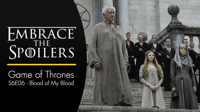 Embrace the Spoilers is back for Game of Thrones, Season 6, Episode 6: Blood of My Blood. We pick up right where we left off after The Door last week, a character from Season 1 returns, the High Sparrow puts his cards on the table, we finally get to see Horn Hill, Arya reunites with a deadly old friend, and there is a lot of danger heading towards Riverrun. Join Joce and Garrett as they dive into the latest episode and stand mouth-agape at the size of freaking dragons.