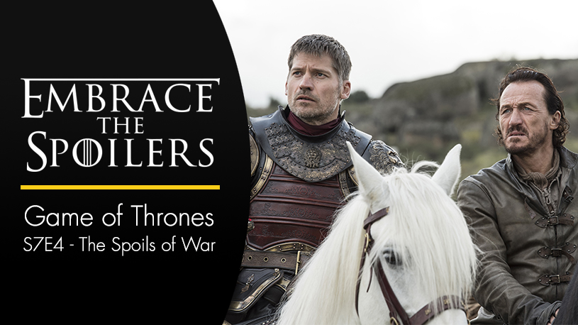 The latest episode of Game of Thrones, The Spoils of War, brought finale-level events to the middle of the seventh season. Bran's fate became more clear, Arya had multiple long-awaited reunions, Jon still wouldn't bend the knee, and the Lannisters moved some wagons. Joce and Garrett shake in their armor as they stare down of the gullet of this spectacular episode.